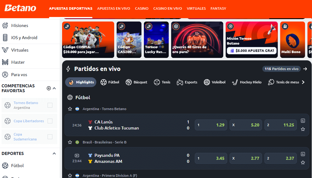 Como Betano sabe de la pasión futbolera de los argentinos, tiene varias ofertas relacionadas con este deporte: